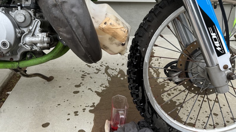 普段からお漏らしの多い我がKDX125SRですが、今回は2ストオイルでした